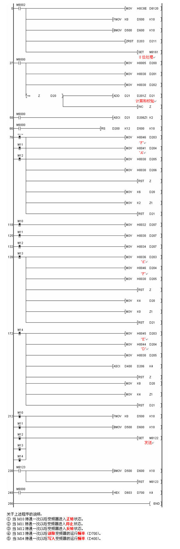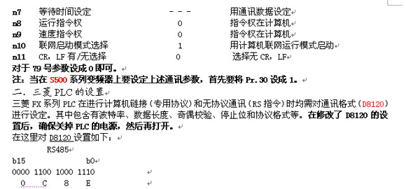 有关利用三菱变频器协议与变频器进行通讯的PLC程序如下: