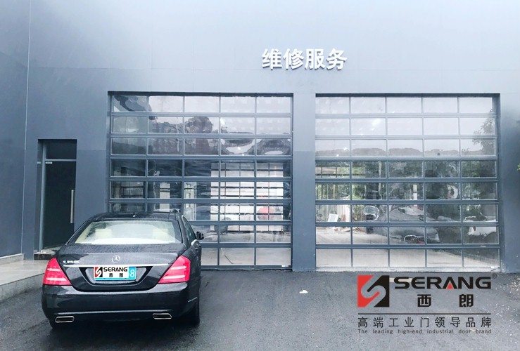 4S店经过多方寻找比较,最终选择了高端工业门知名品牌的SERANG苏州蘑菇视频免费网站门业。蘑菇视频免费网站明格4S店翻转提升门采用高透明度的亚克力材质,其强度是普通玻璃的100倍,并具有更好的采光效果;框架结构为订制铝合金型材,并为业主订制统一灰色。该批工业提升门为标准转弯翻转提升方式,门体在开门过程中,顺沿门楣墙体和吊顶运行,节省现场安装空间,也一定程度上提升档次增强美感。
