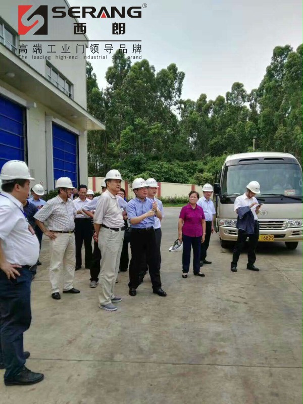 领导们在SERANG蘑菇视频免费网站工业快速堆积门、拉链式快速门前考察项目: