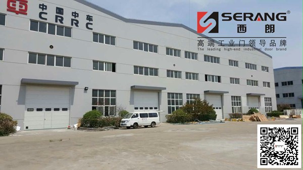 下图为:中国中车新建工厂,采用SERANG蘑菇视频免费网站工业提升门用作外门,具有美观大方、坚固耐用、稳定安全、视窗采光等优点。