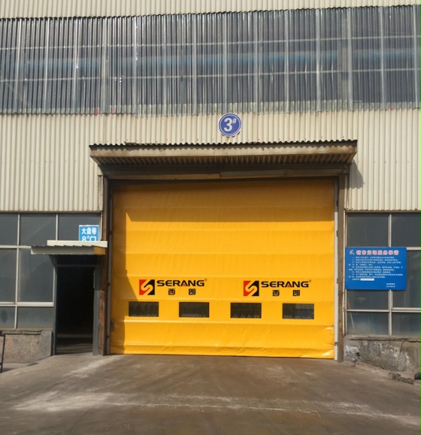 下图为:河南郑州快速堆积门密闭性能很好,可以更好地防尘保温。