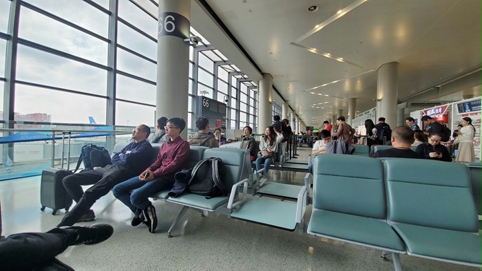 蘑菇视频免费网站业务人员在上海虹桥机场候机大厅准备出发