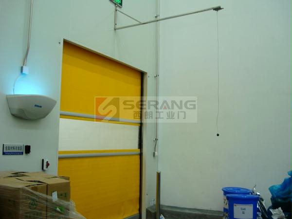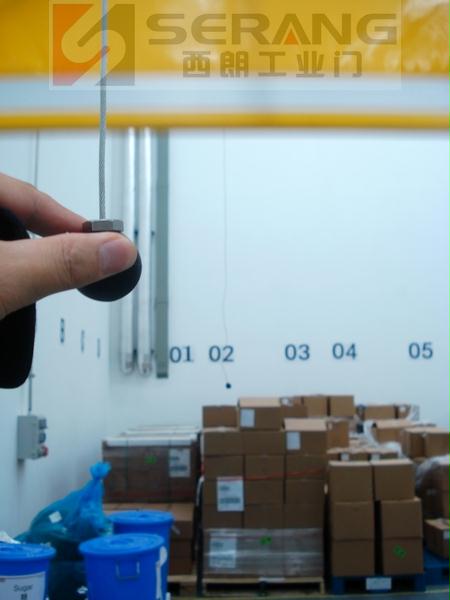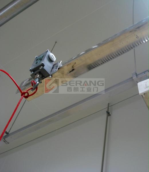 下图为:食品车间仓库不锈钢快速门上使用的拉绳开关控制。