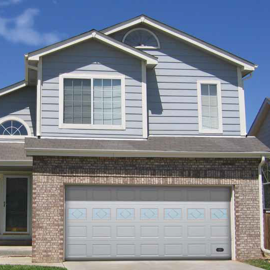门板选用0.45厚彩涂钢板,前后两面钢板的边缘成型后非直接接触,有效地避免了冷桥效应,防止门板被冻结,保温节能效果更加突显。内部填充采用保温隔热性能优良的高密度聚氨酯发泡材料,发泡密度43kg/m³,为国内车库门市场最高密度标准,表面彩涂处理。
