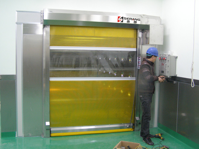 不锈钢防爆快速门配合不锈钢风淋室联动使用。